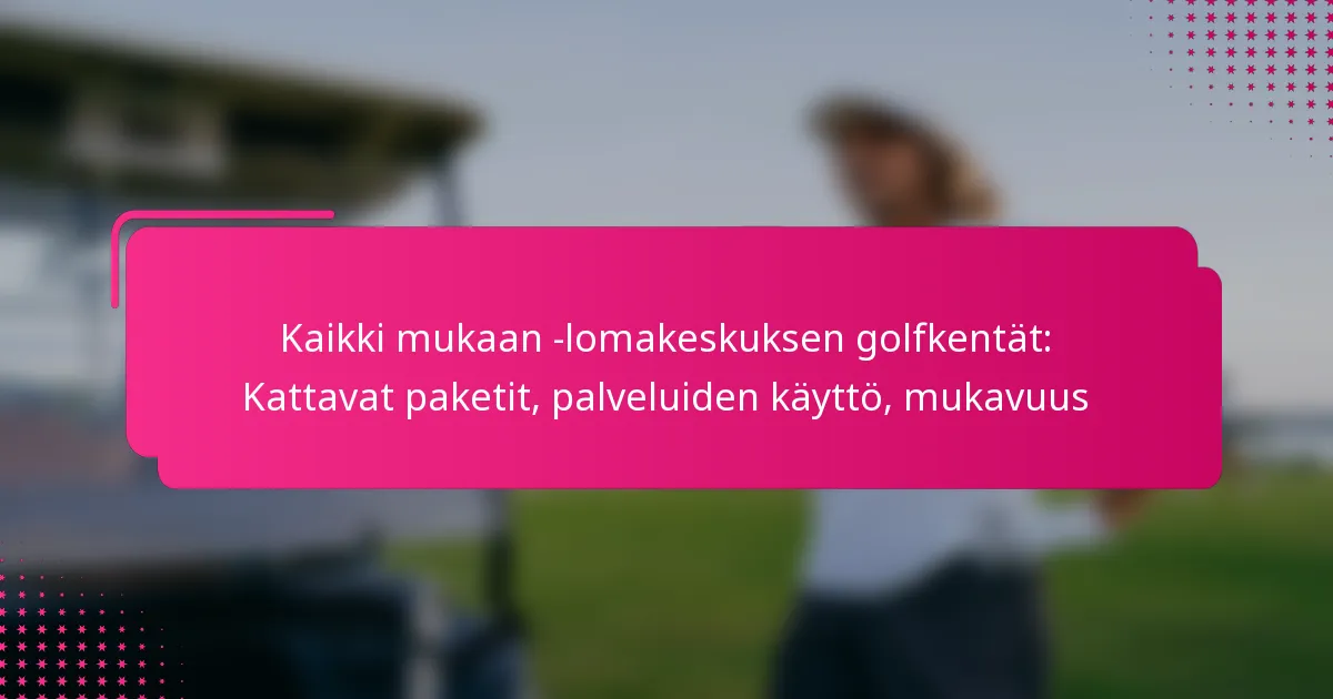 Kaikki mukaan lukien -golflomakeskusten paketit voivat vaihdella merkittävästi, joten on tärkeää verrata, mitä kukin tarjoaa. Jotkut lomakeskukset sisältävät rajattoman golfin, kun taas toiset saattavat rajoittaa kierroksia tai veloittaa lisämaksuja premium-kentistä. Paketit kattavat usein ateriat, juomat ja lisäaktiviteetit, mikä voi parantaa kokonaiskokemustasi.